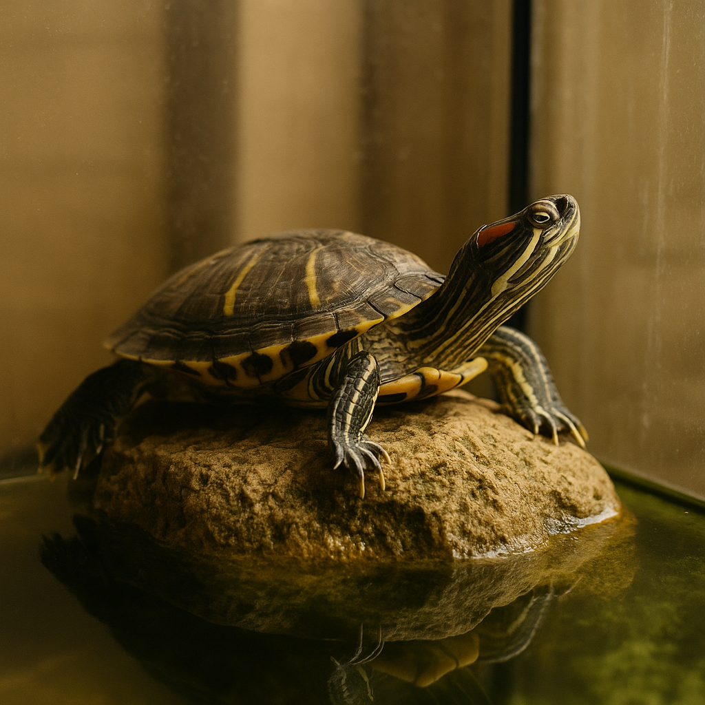 探訪時,我們注意到客廳角落有一缸烏龜。奶奶笑著說,那隻烏龜是幾年前在爺爺住院時,兒子在門口撿到的——受傷、奄奄一息,比手掌心還小。